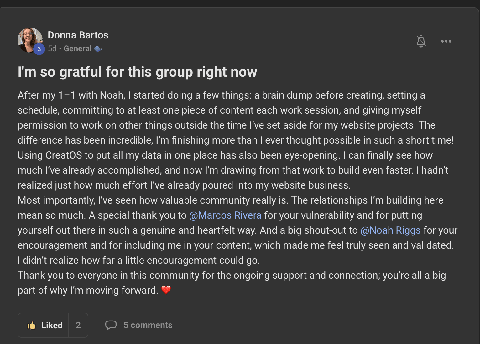 112 people. Thatās how many creators joined The Creatorās Club in the last 48 hours. The doors are now closing over the next few hours and I am going to begin to approving members in a few. And honestly? Iām more then thrilled by the response. I am so excited to see how this community helps people to finish the things that matter to them and for us to all pursue these meaningful goals together. It will be incredible to see more people follow through and create the life and business they want...